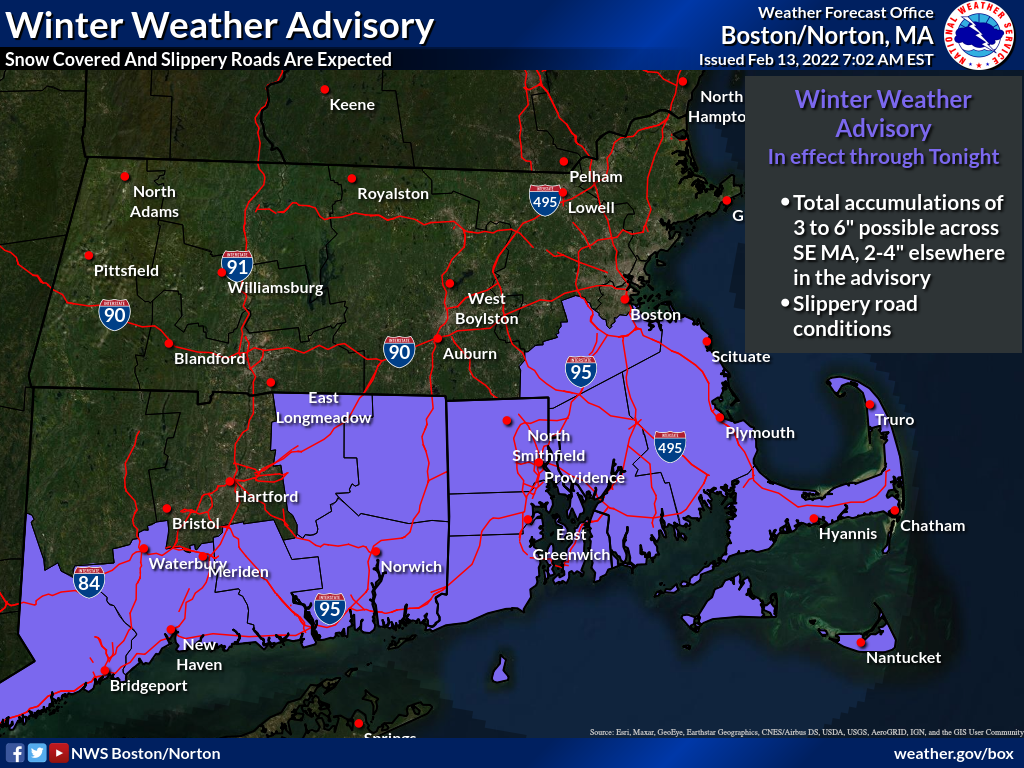 [2022.02.13 AM] NWS Boston EM Briefing - Accumulating Snow Today into early Monday