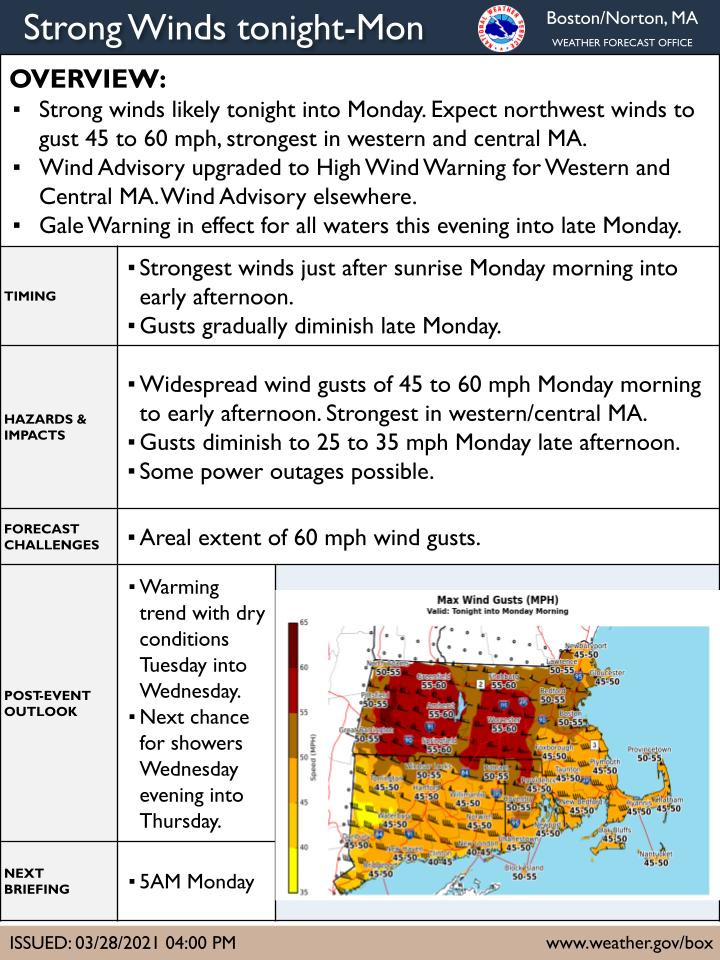 [2021-03-28 PM] NWS Boston EM Briefing: Strong winds tonight into Monday