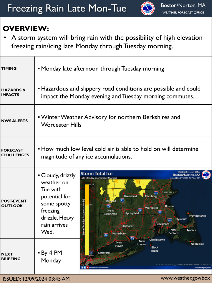[12.09.2024 AM] NWS Boston Briefing - High Elevation Freezing Rain Possible Mon-Tue