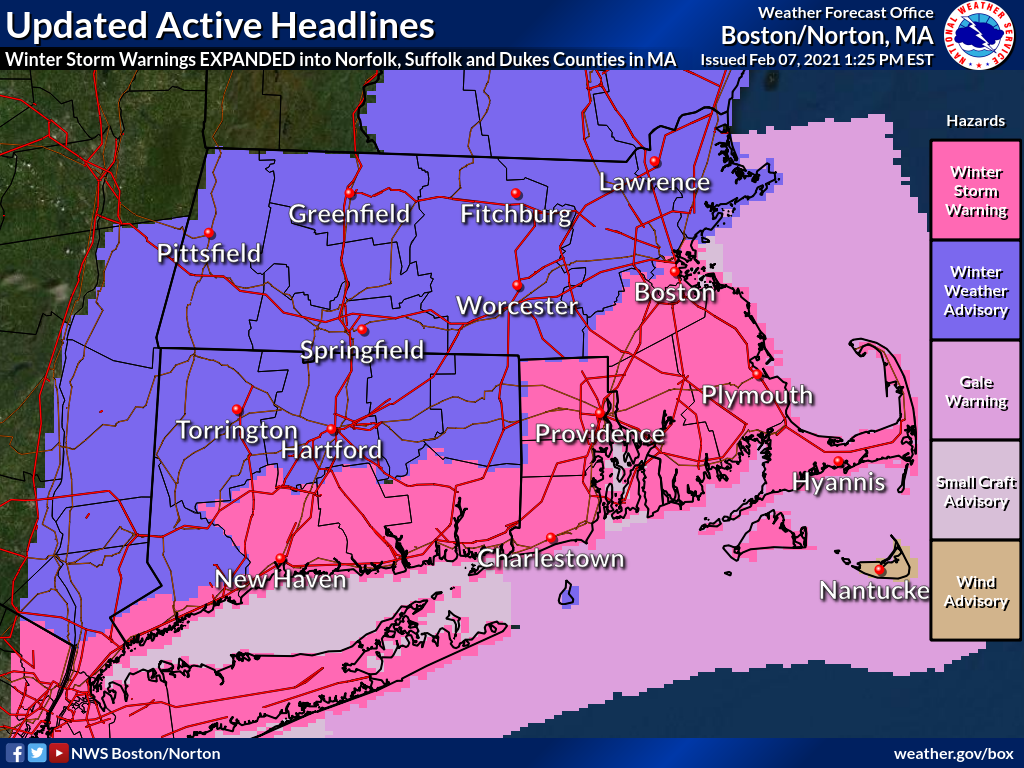 [2021-02-07 130 PM] NWS Boston EM Briefing UPDATE: Ongoing Significant Winter Storm Today