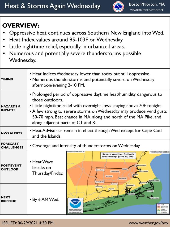 [06.29.21 PM] NWS Boston EM Briefing - Wed. Oppressive Heat and Thunderstorm Potential