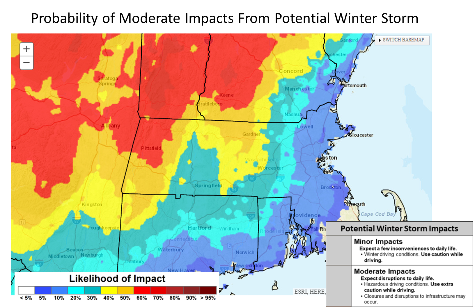 Good afternoon, Attached is a one pager briefing for the snow event tonight across western MA/CT, mainly west of the CT river. We've issued a winter weather advisory for western Hampden county where highest snow amounts are expected, which will extend south through Litchfield county and across the hills of far western Hartford county. We've also included a briefing on the potential winter storm which may impact the region late Mon through Tue night. This has the potential to be a significant storm, but greatest impacts and heaviest snow is expected to be confined to high elevations in northern and western MA. We included graphics for the probability of 4 and 8 inches as well as the probability of moderate impacts from this storm. Unless there are significant changes, expect the next briefing to be issued Saturday afternoon. Thank you. Kevin Cadima, Kristie Smith and Matt Belk If you have any questions or would like more information, don't hesitate to contact us via this email address, on NWSChat <https://nwschat.weather.gov/>, or at the following: National Weather Service Boston/Norton, MA 46 Commerce Way Norton, MA 02766 508.622.3280 Website <http://www.weather.gov/boston> | Facebook <http://www.facebook.com/NWSBoston> | Twitter <http://www.twitter.com/NWSBoston>