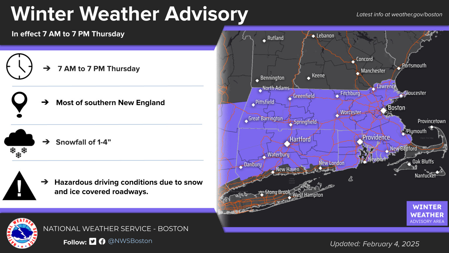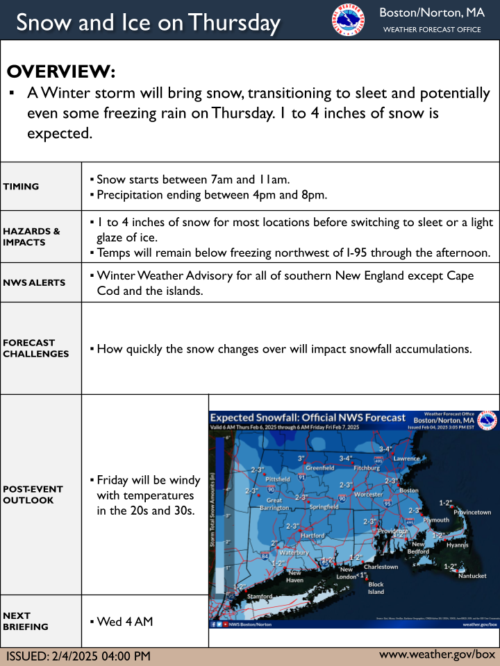 [2025.02.04 PM] NWS Boston EM Briefing - Snow and Ice Thursday