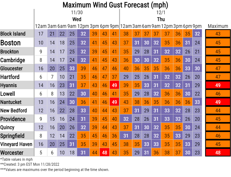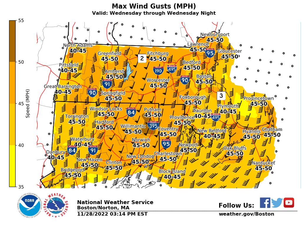 [11-28-2022 PM] NWS Boston EM Briefing: Strong to Damaging Winds late Wednesday into Thursday