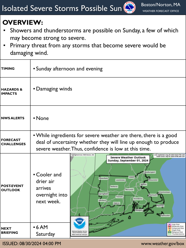 NWS Boston EM Briefing: Severe Weather Possible Sunday