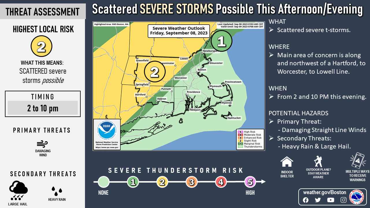 [09.08.2023 AM] NWS Boston EM Briefing: Heat & Humidity Along With Scattered Severe T-Storms Possible Across the Interior