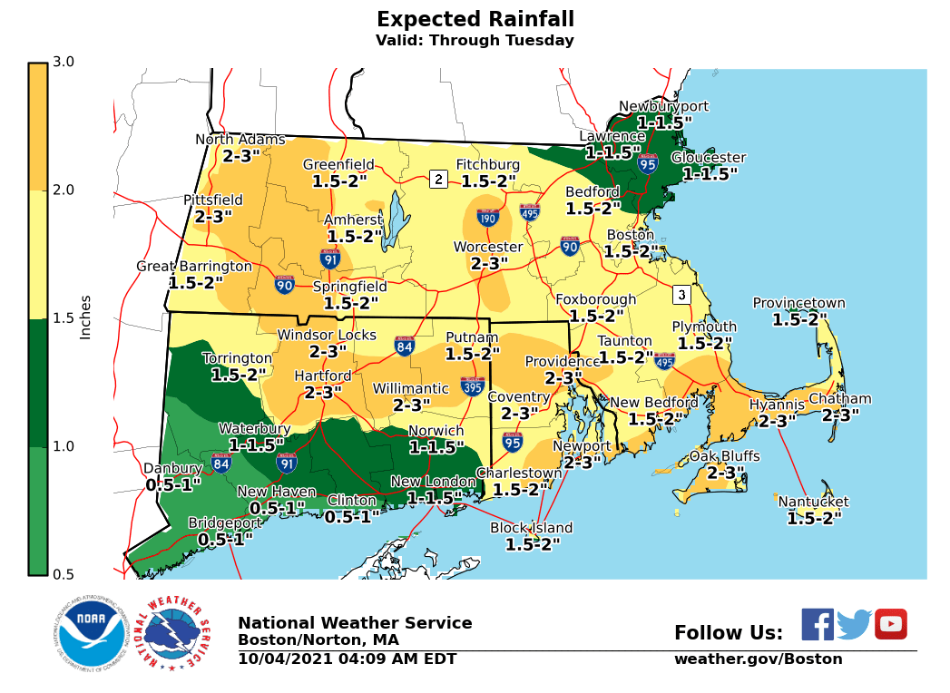 [10.04.2021 AM] NWS Boston EM Briefing: Heavy Rain and Minor Flooding Possible through Tuesday morning