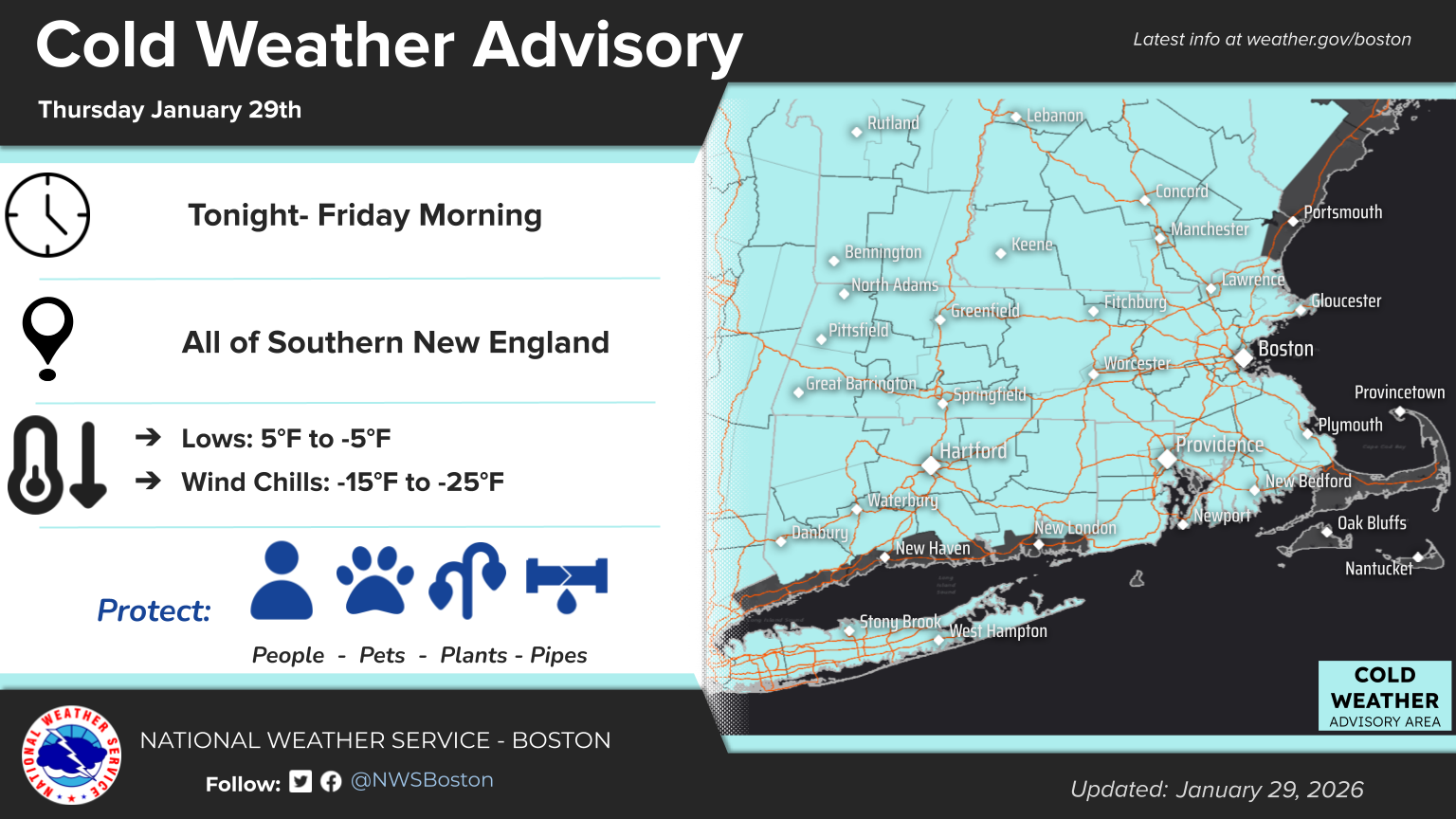 [01.29.2026 AM] NWS Boston EM Briefing: Dangerous Cold Expected Tonight into Friday Morning