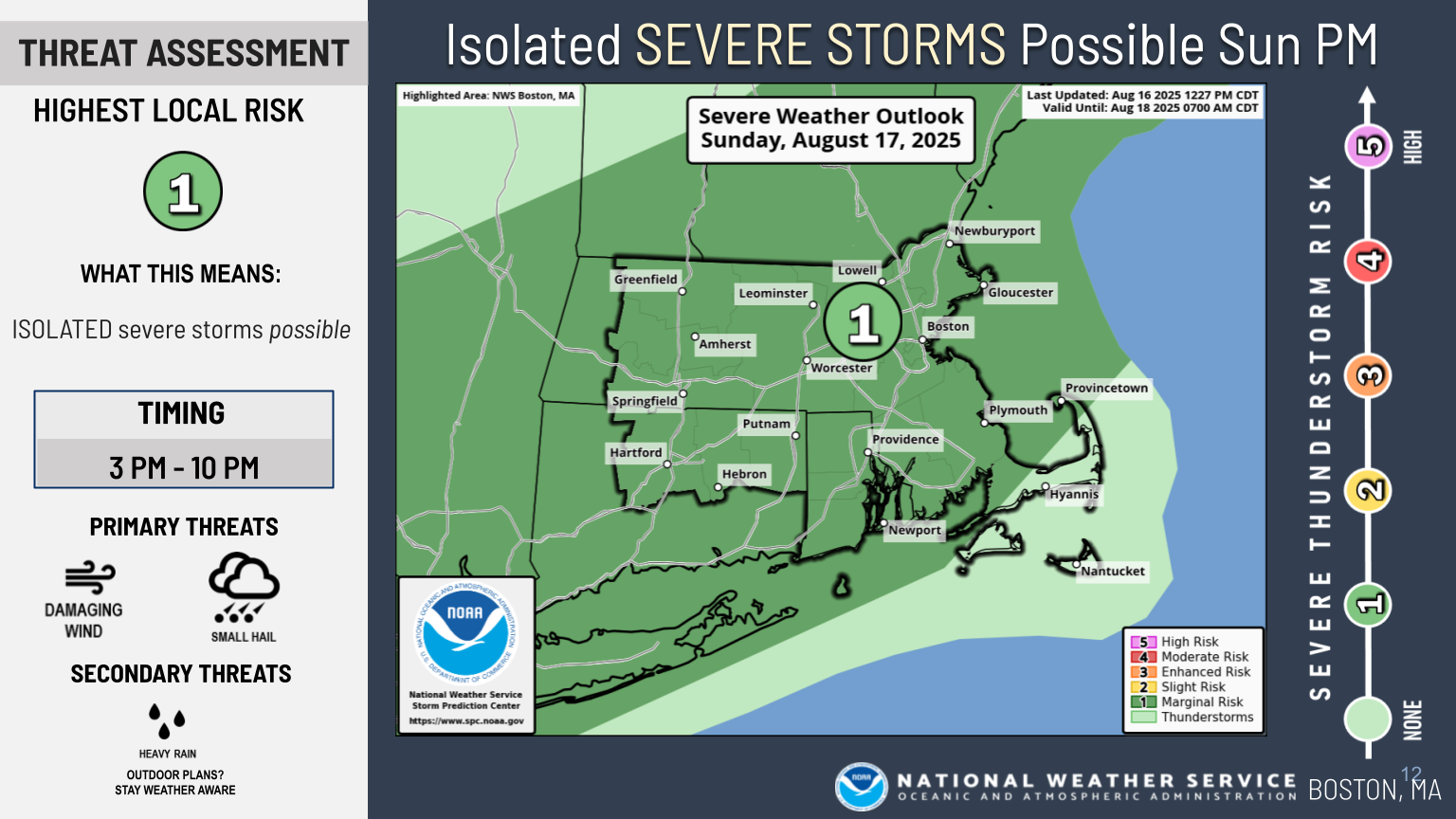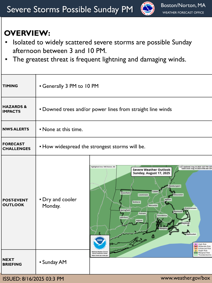 [2025.08.16 PM] NWS Boston EM Briefing: Severe Thunderstorms Possible Sunday PM