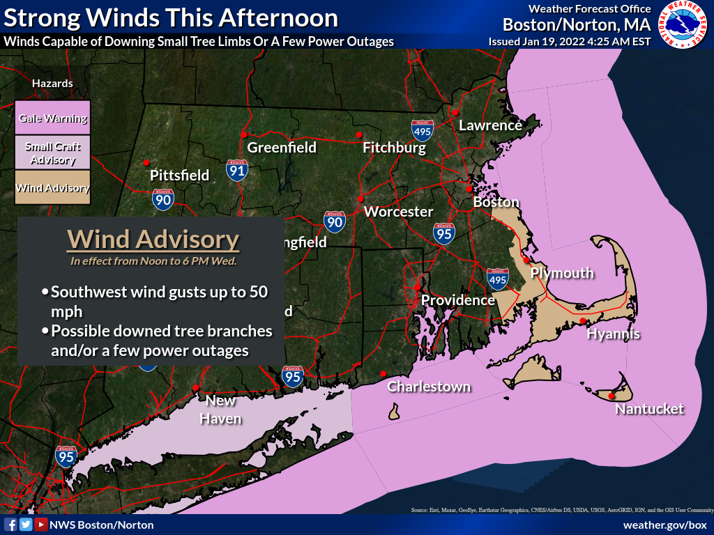 [2022.01.19 AM] NWS Boston EM Briefing: Strong Winds Today; Accumulating Snow Thursday