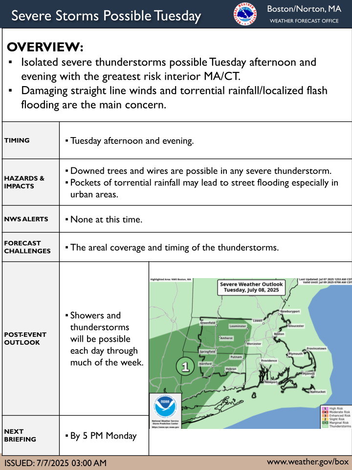[07.07.2025.AM] NWS Boston Briefing: Severe Weather Potential Tuesday