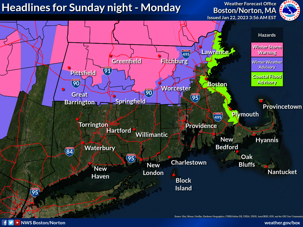 [01.22.2023 AM] NWS Boston EM Briefing: Interior Snow Sun night into Mon