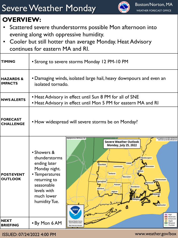 [2022.07.24 PM] NWS Boston EM Briefing: Potential Severe Storms Monday