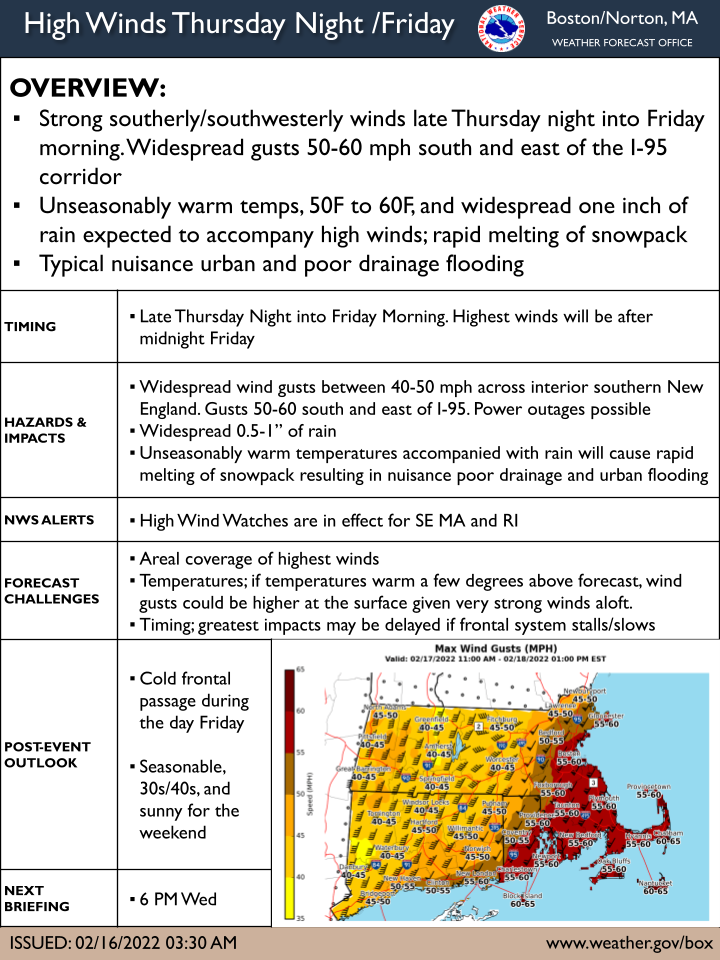 [2022.02.16 AM] NWS Boston EM Briefing - High Winds Thursday Night into Friday Morning