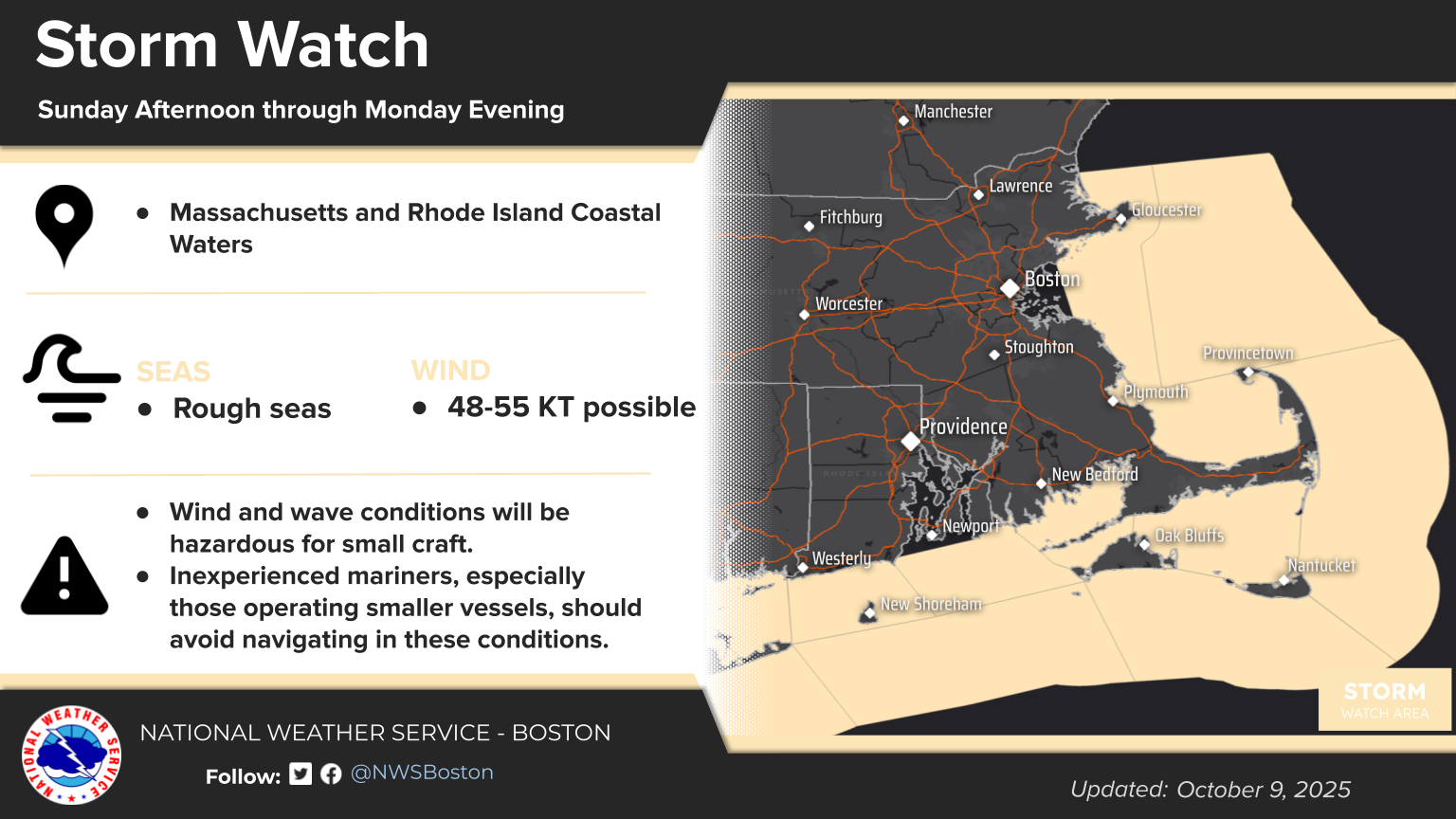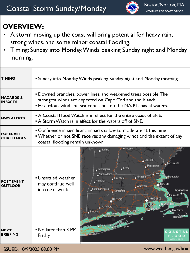 [2025.10.09 PM] NWS Boston/Norton EM Briefing: Coastal Storm This Weekend