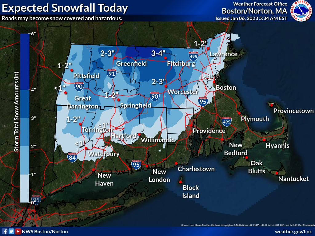 Good morning everyone, Apologies for the second email, but we wanted to send a corrected snowfall graphic to convey a small change in forecast snow for Connecticut. Thank you, Bryce Williams and Hayden Frank If you have any questions or would like more information, don't hesitate to contact us via this email address, on NWSChat <https://nwschat.weather.gov/>, or at the following: National Weather Service Boston/Norton, MA 46 Commerce Way Norton, MA 02766 508.622.3280 Website <http://www.weather.gov/boston> | Facebook <http://www.facebook.com/NWSBoston> | Twitter <http://www.twitter.com/NWSBoston>