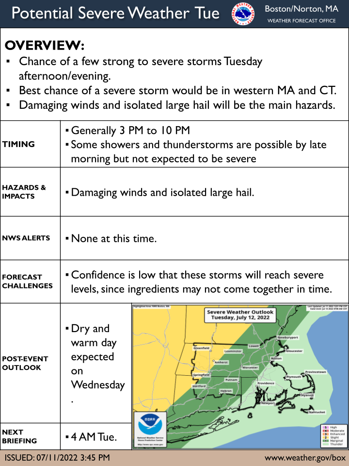 [2022.07.11 PM] NWS Boston EM Briefing: Strong to Severe Storms Possible Tuesday
