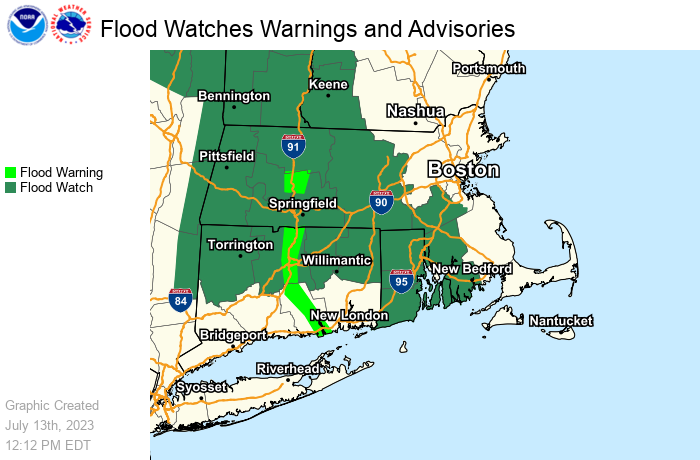 Good Afternoon Everyone, A Flood Watch has been issued for Rhode Island and northern Connecticut as well as western, central, and part of southeast Massachusetts. The watch is in effect from late this afternoon until early Friday morning. Additionally, there is the possibility of wind damage or hail in a few locations in western Massachusetts tonight as a line of thunderstorms moves east from New York State. Please see the attached one-page briefing and graphic for details. Our next briefing will be emailed early Friday morning. If you have any questions or would like more information, don't hesitate to contact us via this email address, on NWSChat <https://nwschat.weather.gov/>, or at 508.622.3280. Thanks, Joe Dellicarpini