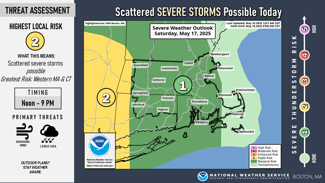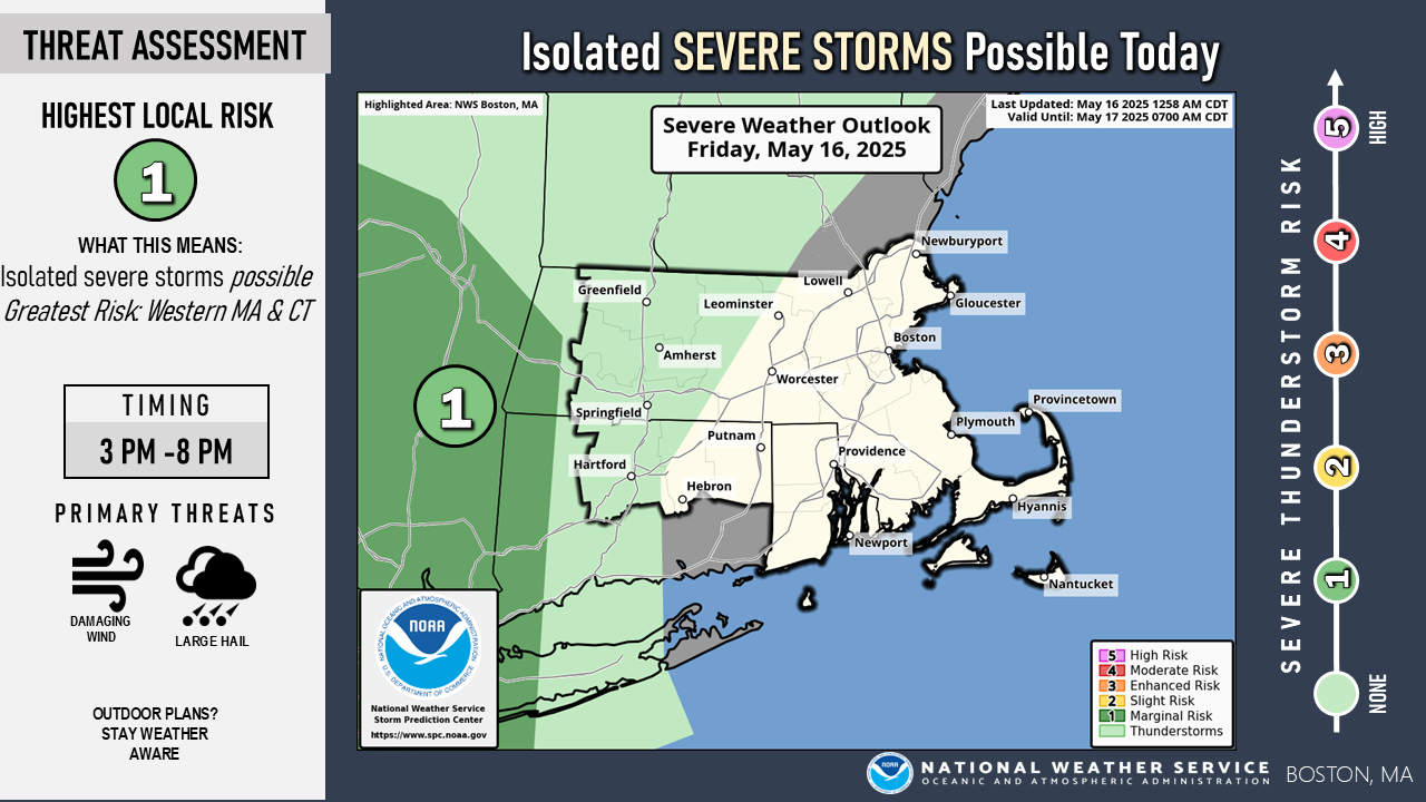 [05.16.2025 AM] NWS Boston/Norton: Thunderstorms Today and Saturday