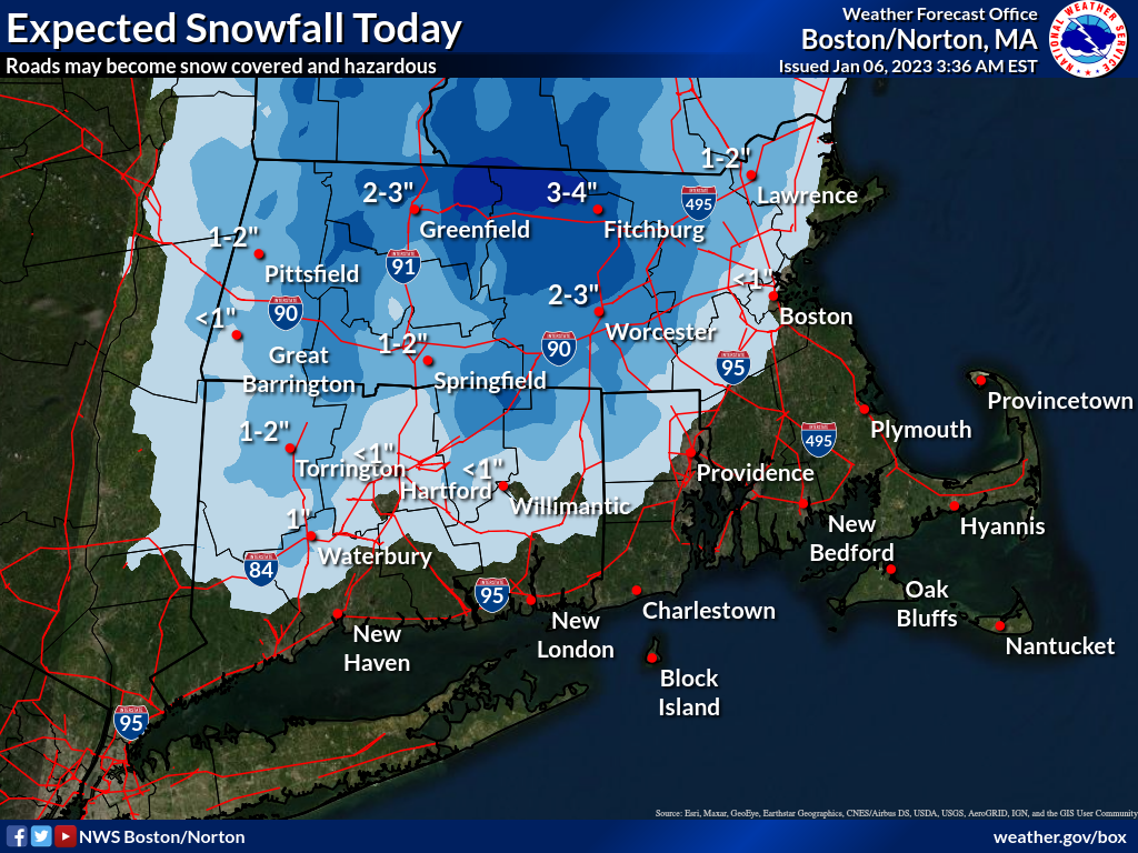 Good morning everyone, Here is the final briefing on our expected accumulating snowfall today. This will likely be the final briefing. If you have any questions, we can be reached via box.operations@noaa.gov or 508-622-3280. Thank you, Bryce Williams and Hayden Frank National Weather Service Boston/Norton, MA 46 Commerce Way Norton, MA 02766 508.622.3280 Website <http://www.weather.gov/boston> | Facebook <http://www.facebook.com/NWSBoston> | Twitter <http://www.twitter.com/NWSBoston>