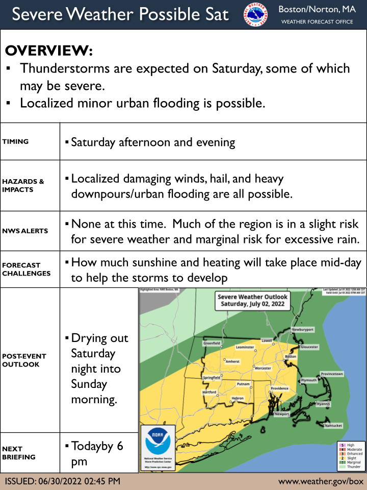 [2022.07.01 AM] NWS Boston EM Briefing: Strong to Severe Storms Possible Saturday