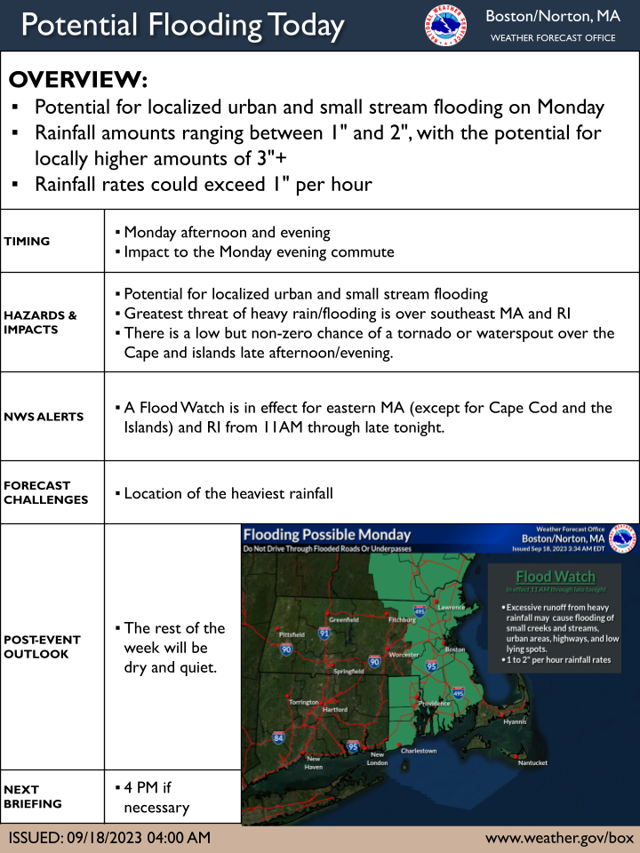 [2023.09.18 AM] NWS Boston EM Briefing: Heavy Rain & Localized Flooding Today