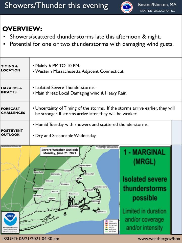 [06.21.21 AM] NWS Boston EM Briefing for Severe Weather Potential this Evening