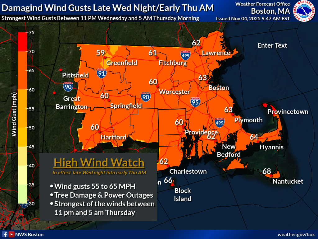 [Weather] [2025.11.04 AM] NWS Boston/Norton EM Briefing: Damaging WInd Gusts Late Wednesday night into early Thursday morning