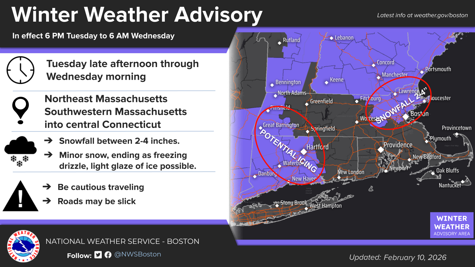 [Weather] [2026.02.10 AM] Boston EM Briefing: Snow & Freezing Drizzle Tonight into Wednesday AM