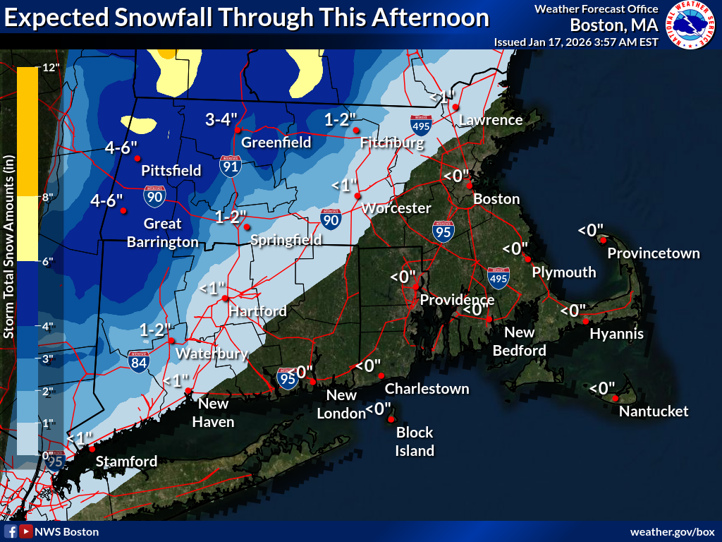 to 5 inches across the Berkshires through this afternoon. Snow was already
