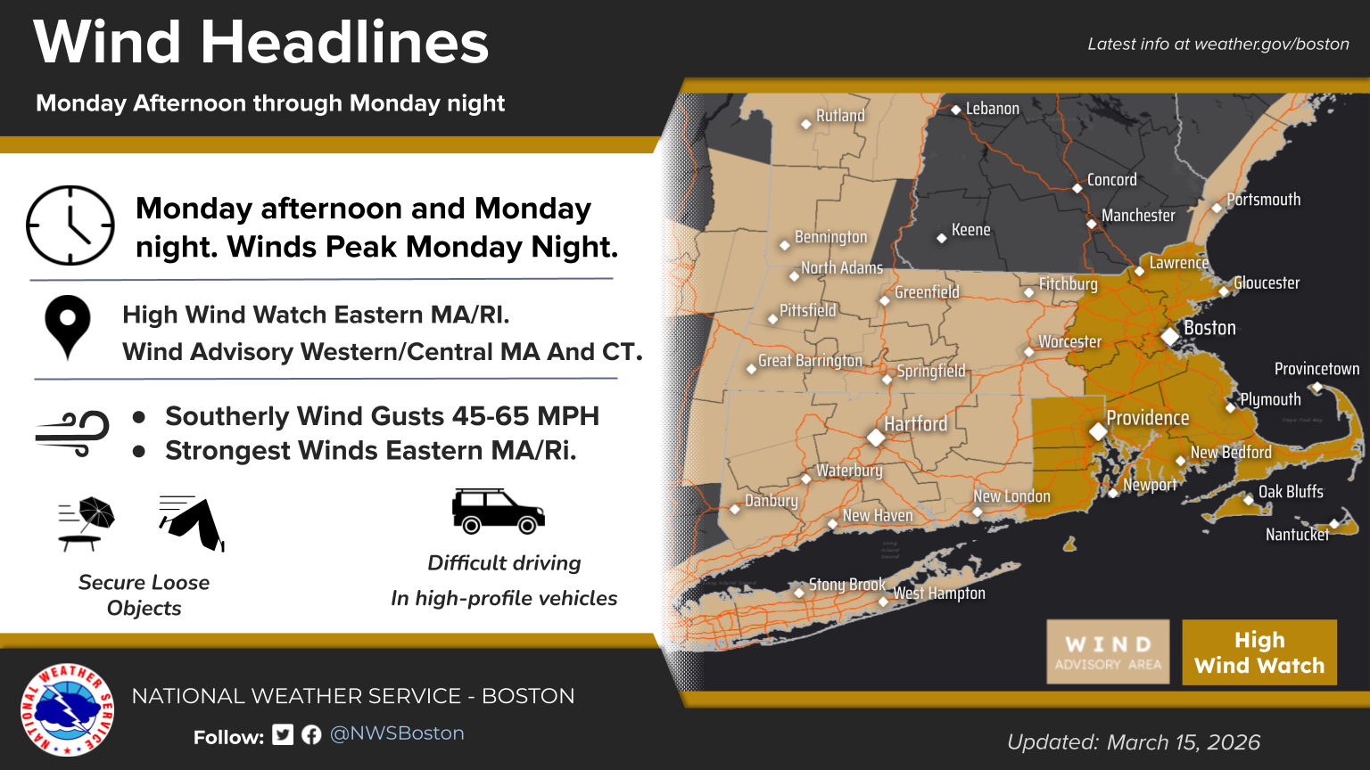 [Weather] [03.15.2026 PM] NWS Boston EM Briefing: Strong Winds, Heavy Rainfall And Flooding Monday and Monday night